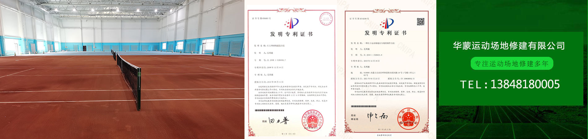 "紅土網(wǎng)球場(chǎng)地建造方法”獲得了實(shí)用專(zhuān)利技術(shù)證書(shū),解決了紅土場(chǎng)地長(zhǎng)畫(huà)線及畫(huà)線難的問(wèn)題;產(chǎn)品綠色環(huán)?!ㄟ^(guò)權(quán)威認(rèn)證機(jī)構(gòu)無(wú)毒環(huán)保檢驗(yàn)。